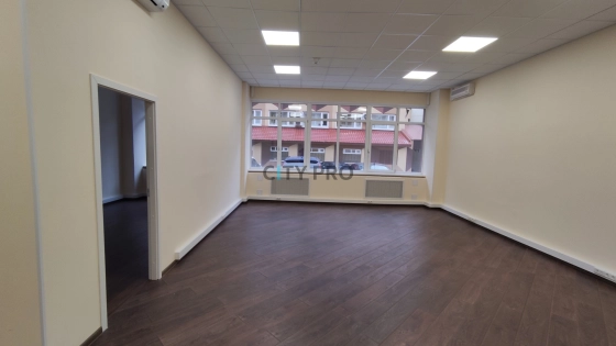 Офисное помещение с новым хорошим ремонтом. Планировка открытая + кабинет руководителя. Высокие потолки и большие окна, установлены кондиционеры.