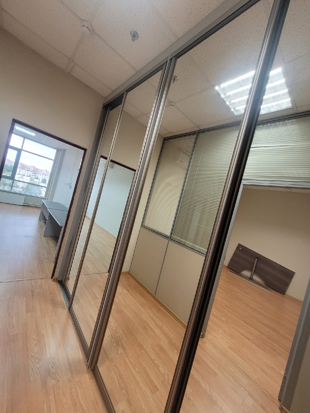 Офисное помещение с ремонтом, большие панорамные окна, высокий потолок. Удобная планировка, входная группа, переговорная и два кабинета. В каждой комнате установлен кондиционер.